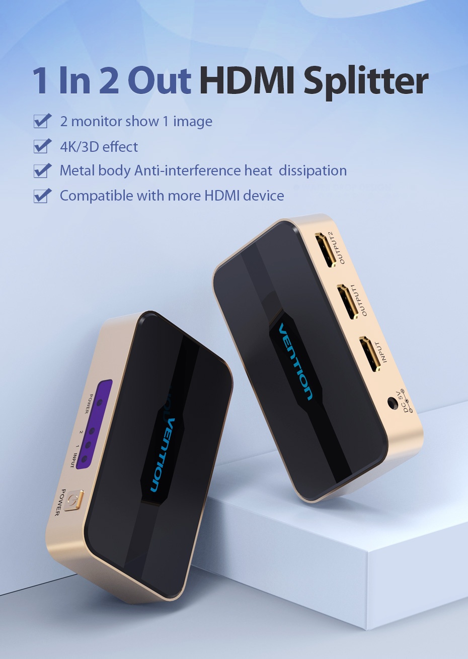 Common Questions for the Vention ACBGO 1 In 2 Out HDMI Splitter (4K@30Hz, Gold Aluminum Alloy):
